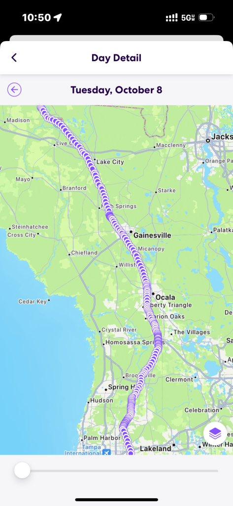 Meanwhile, Brooks is fleeing hurricane Milton driving from Fort Myers to Atlanta. He left at 3:50am and made good time for the first hour or so. After that it’s been very slow going despite allowing traffic to drive in the emergency lane. His Life360 drive looks painful but he assures me it hasn’t been bad.