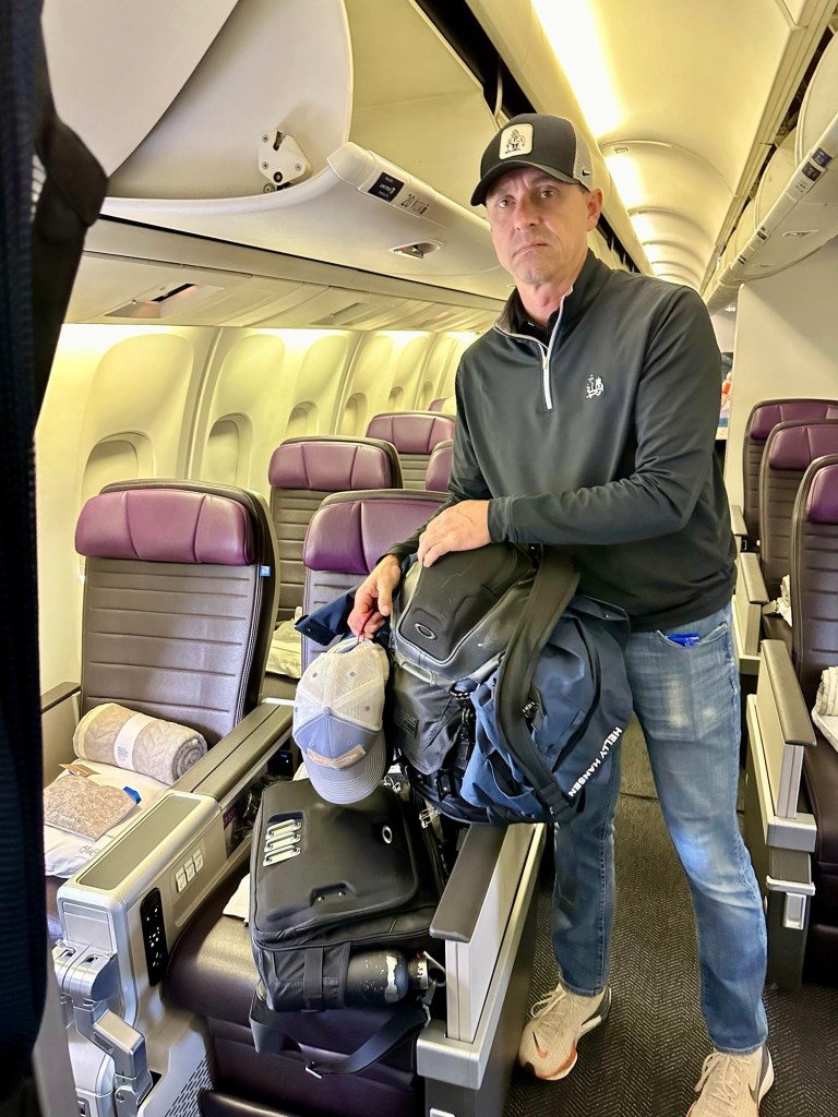 We breezed through the boarding process with no issues and found our seats. It didn’t take long for Greg to regret his decisions.