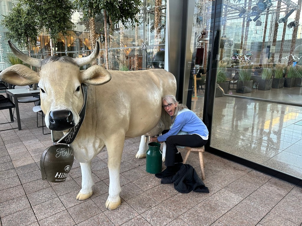 I jokingly asked if anyone wanted to milk the cow for the blog. To my surprise Linda jumped right in! Kids…take notice. This is taking one for the team for the blog.