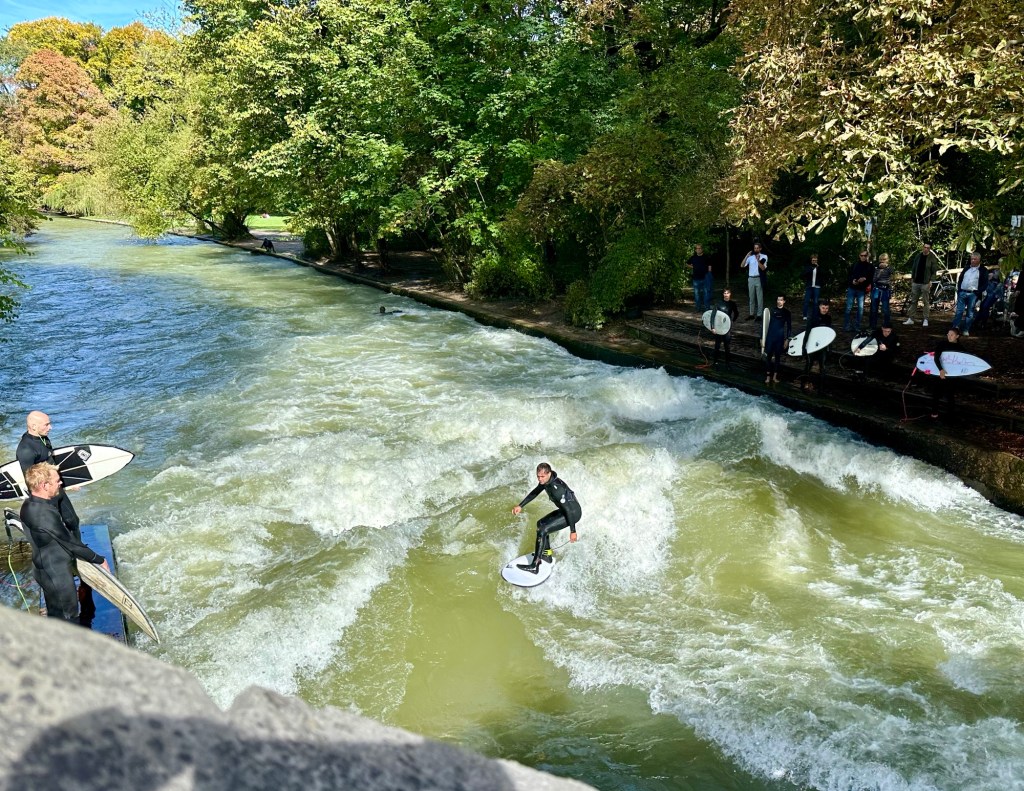 We strolled for approximately 20 minutes towards the raging water in the middle of the city where people surf. It’s crazy how much water there is as well as the number of surfers in the middle of what should be the work day.