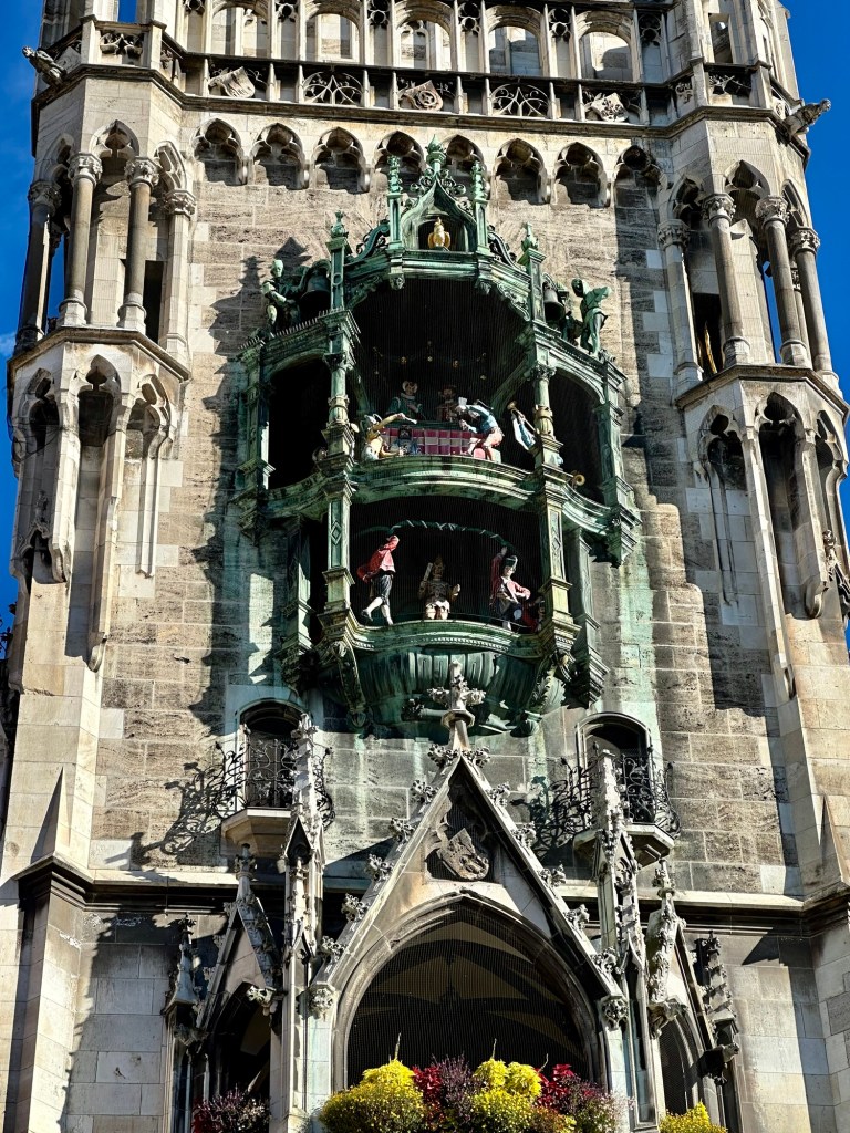We made our way back to the glockenspiel and it’s getting really crowded now. We chose a nice spot in the sun to watch the show.