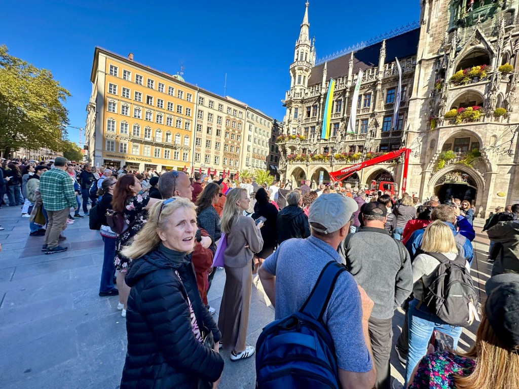 We walked to the Marienplatz with about ten mins to spare. Initially there weren’t a ton of people there waiting.