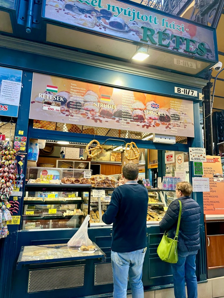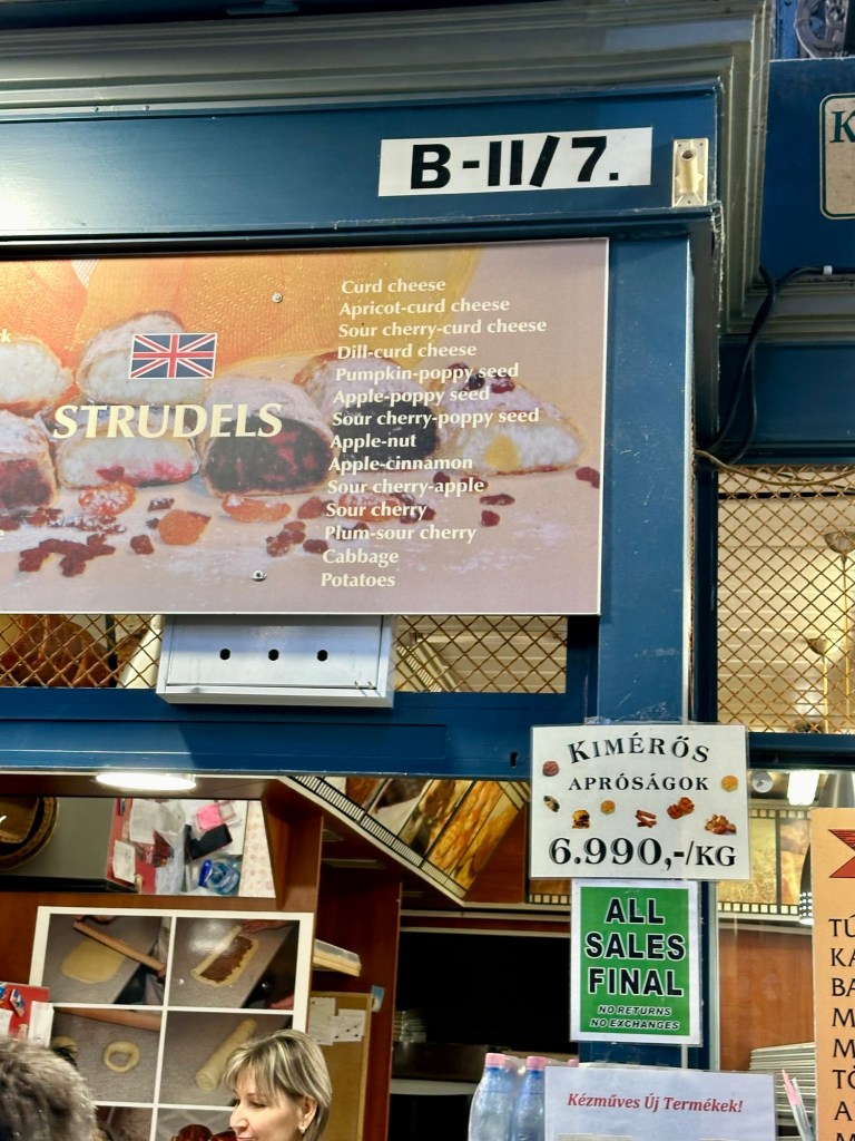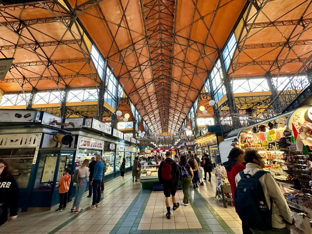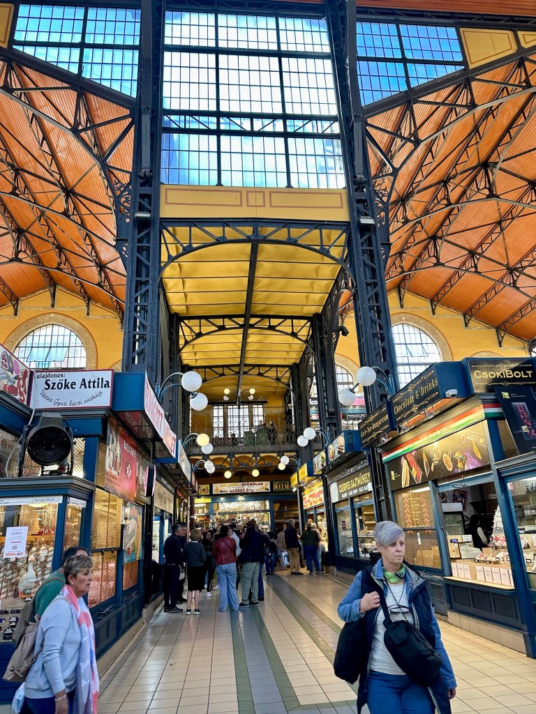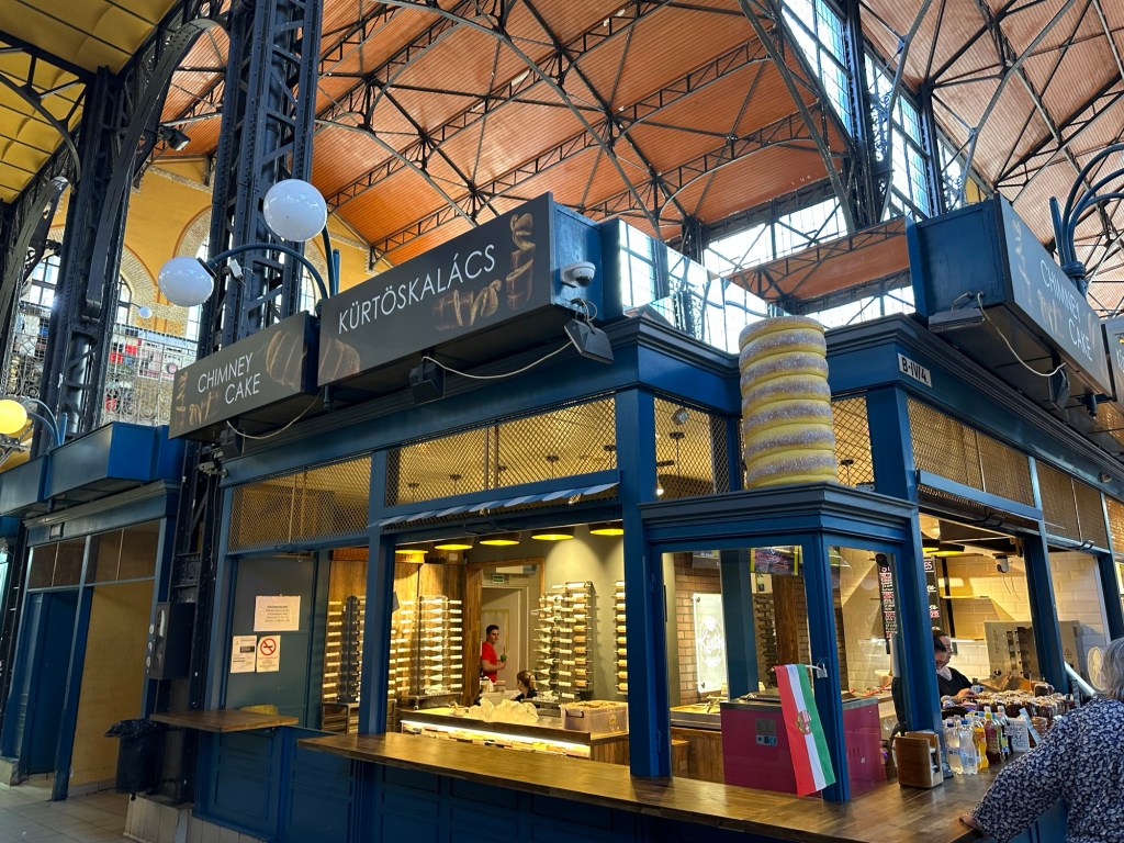 We arrived at the Market Hall mostly to window shop. I had planned to get a Chimney Cake because Emily had mentioned that there was a stall here selling them. She told us to also check out the paprika which Budapest is known for. It was reminiscent of the market hall that we visited in the Baltics this summer that was in zeppelin hangers.