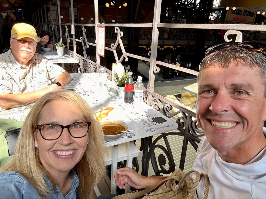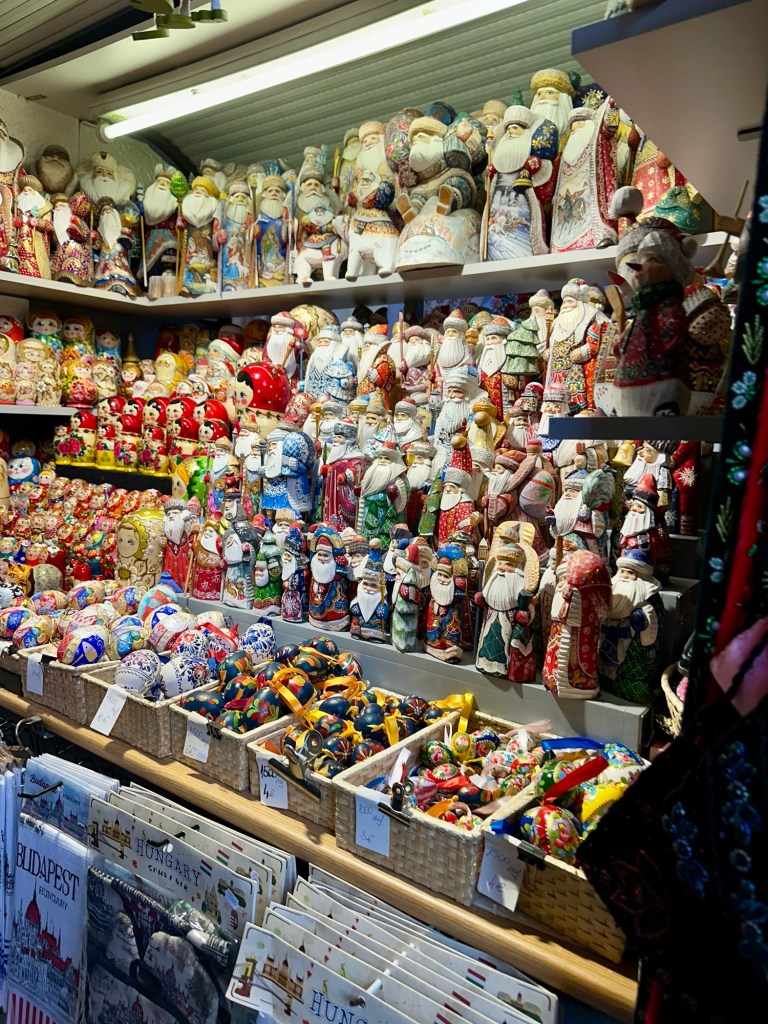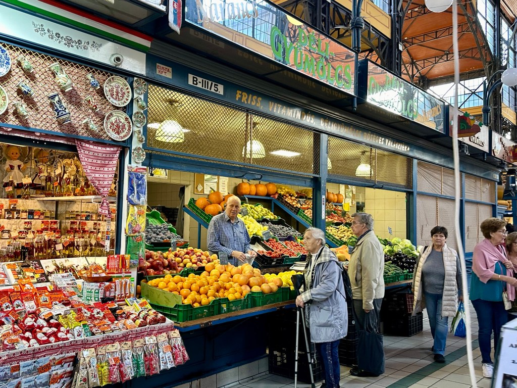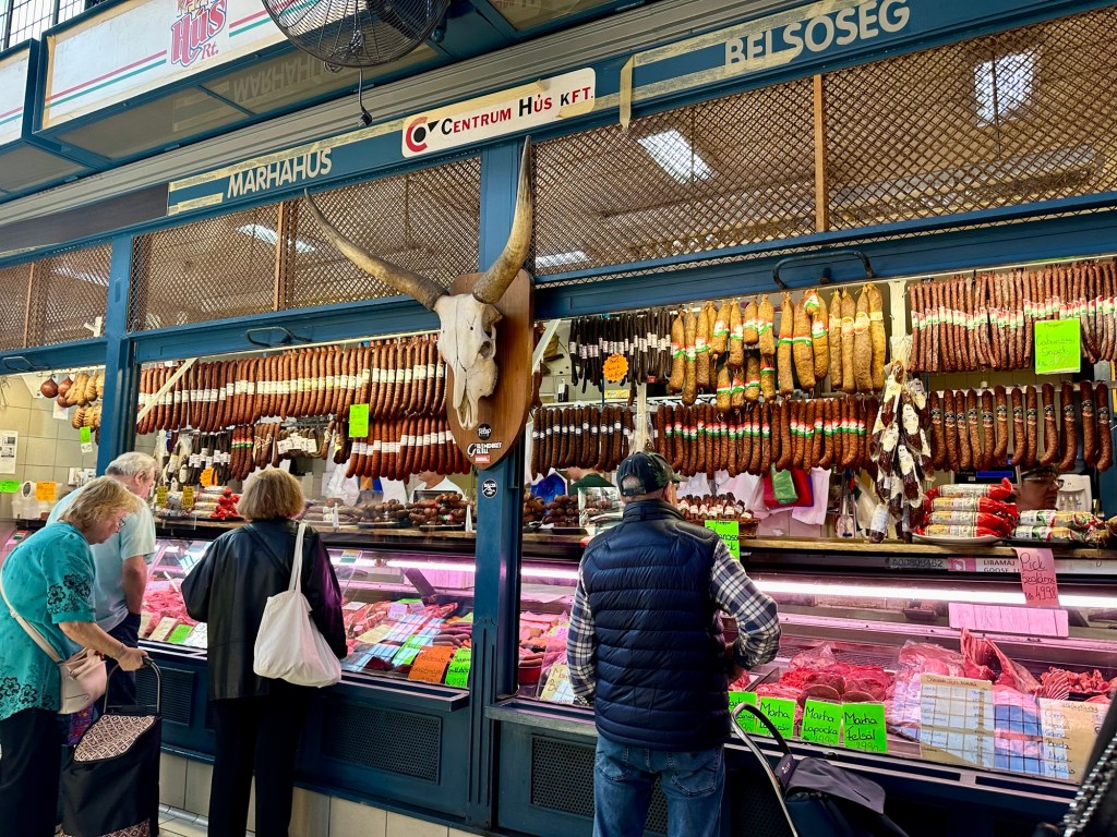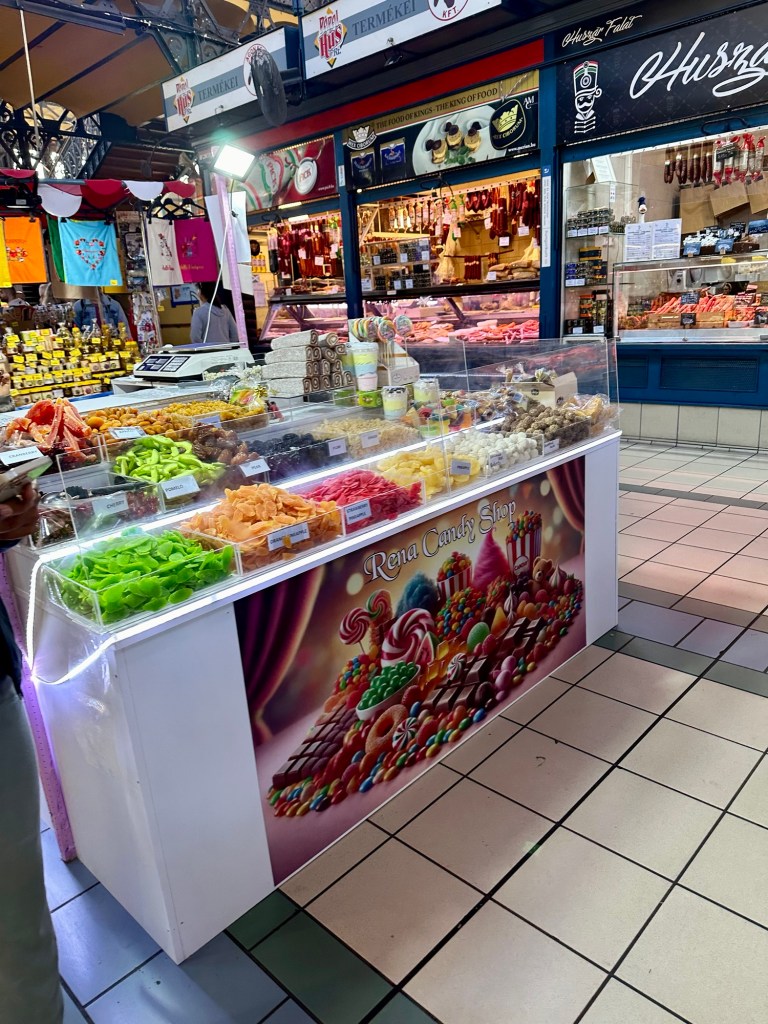 We arrived at the Market Hall mostly to window shop. I had planned to get a Chimney Cake because Emily had mentioned that there was a stall here selling them. She told us to also check out the paprika which Budapest is known for. It was reminiscent of the market hall that we visited in the Baltics this summer that was in zeppelin hangers.
