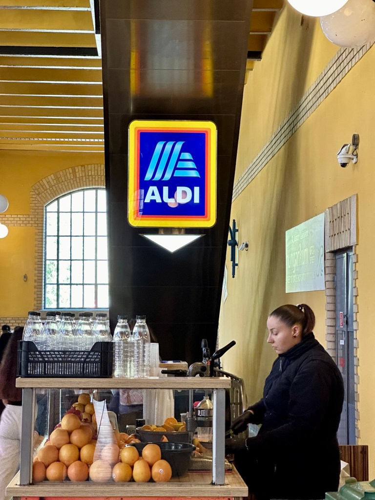 We found the chimney cake booth and they had lots of them already made and wrapped. Emily warned us not to get one that wasn’t freshly made. Greg and I stalked the booth for a while waiting for someone to order one. Finally someone did and it definitely wasn’t made fresh. It’s a no for me. I’m willing to wait.