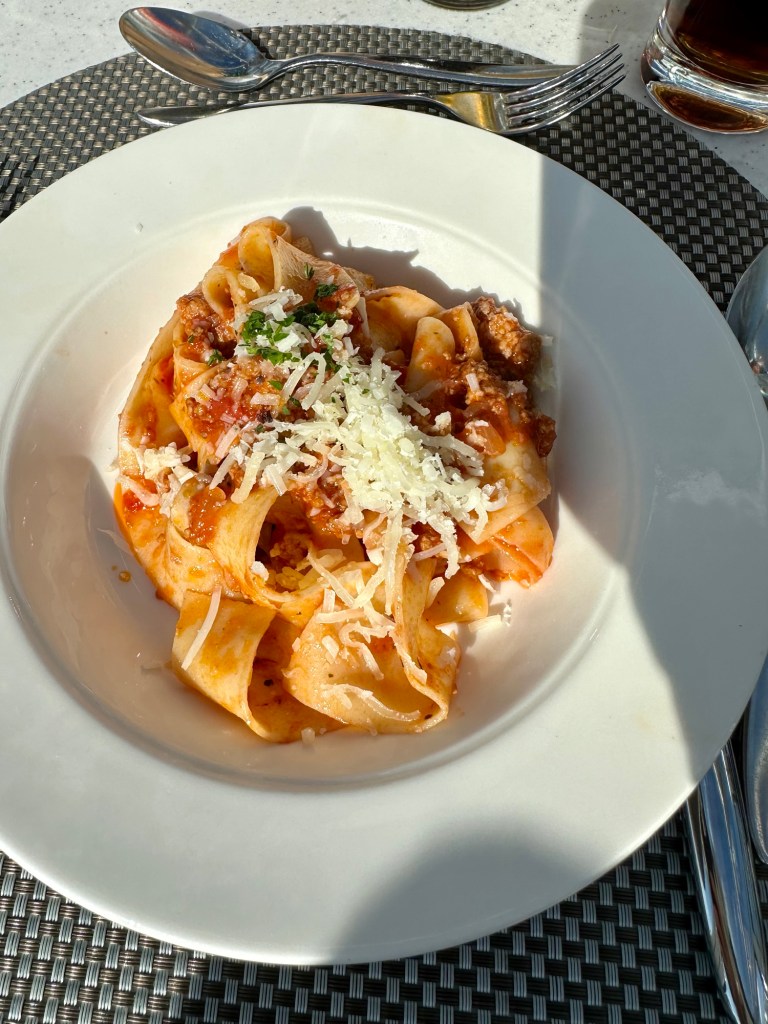 For lunch I had the broccoli soup (gave most of it to Carey), the ragu (gave only one tiny bite to Greg and cleaned the rest of my plate) and the banana split. Literally can’t tell you the last time I had a banana split and I’ve been missing out.