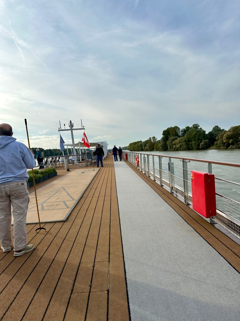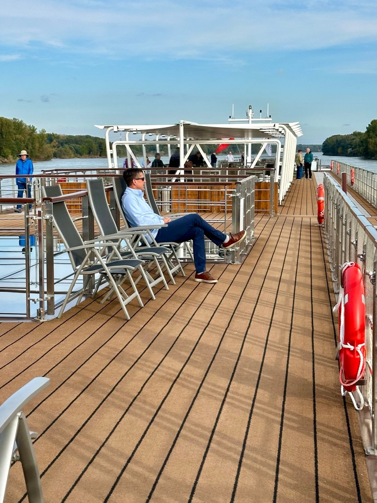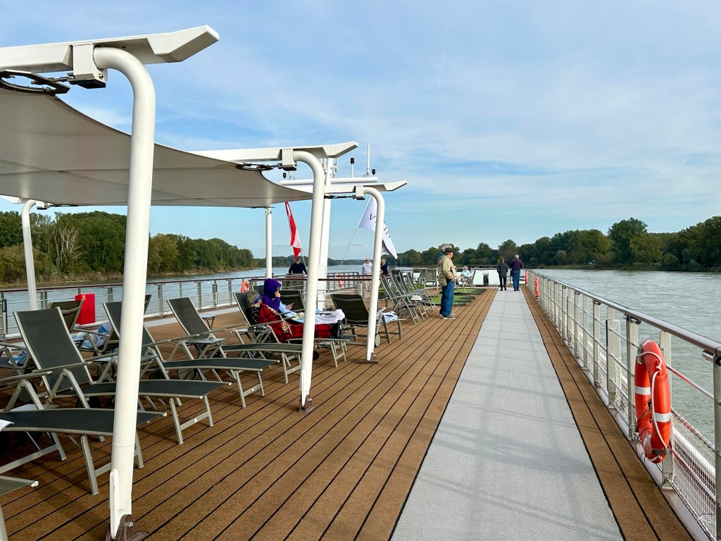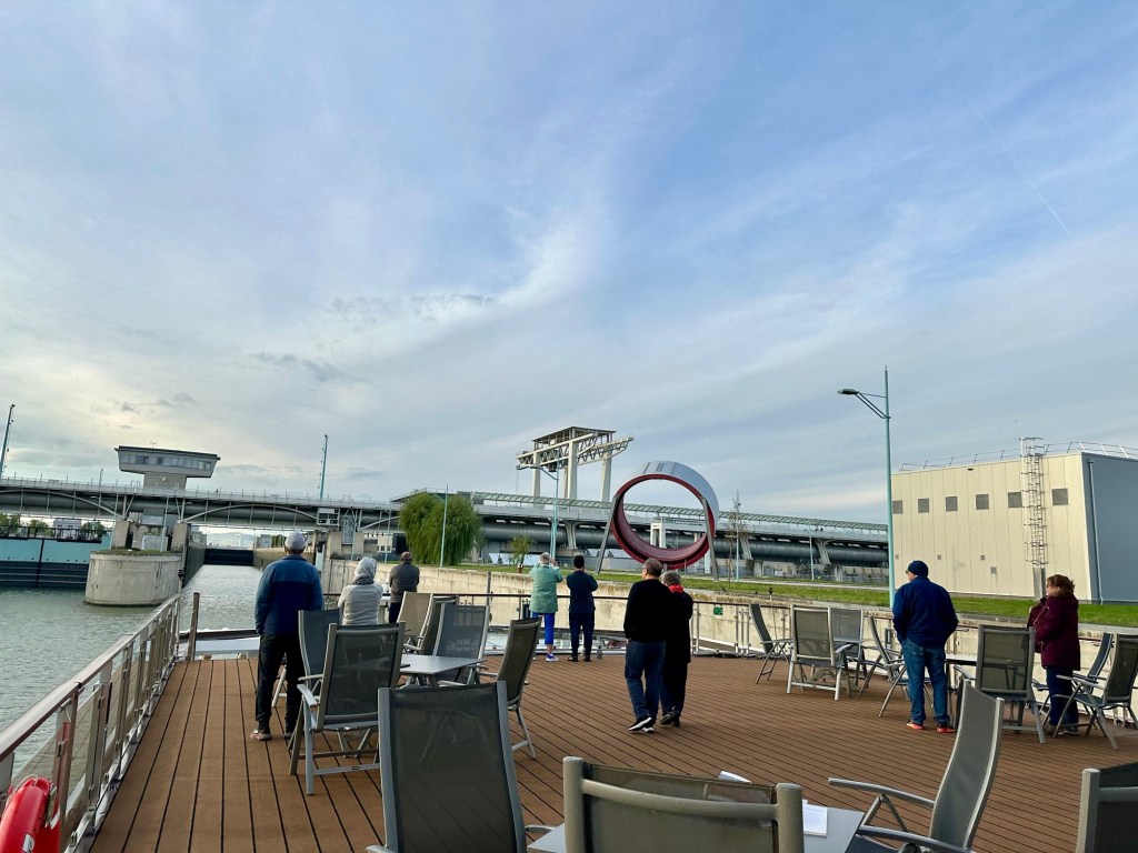 Thankfully the day warmed up from this morning’s lock and emergency drill adventures. We have been able to stand on the sundeck and enjoy the sights as well as doing some walking on the walking path.