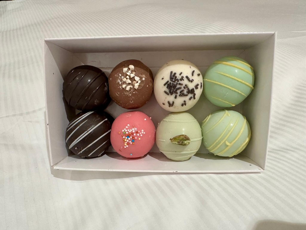 After getting back to our room at 9:30pm Greg remembered that we had bought those cake pop things. He tried one but I decided to be healthy and pass on yet another dessert.