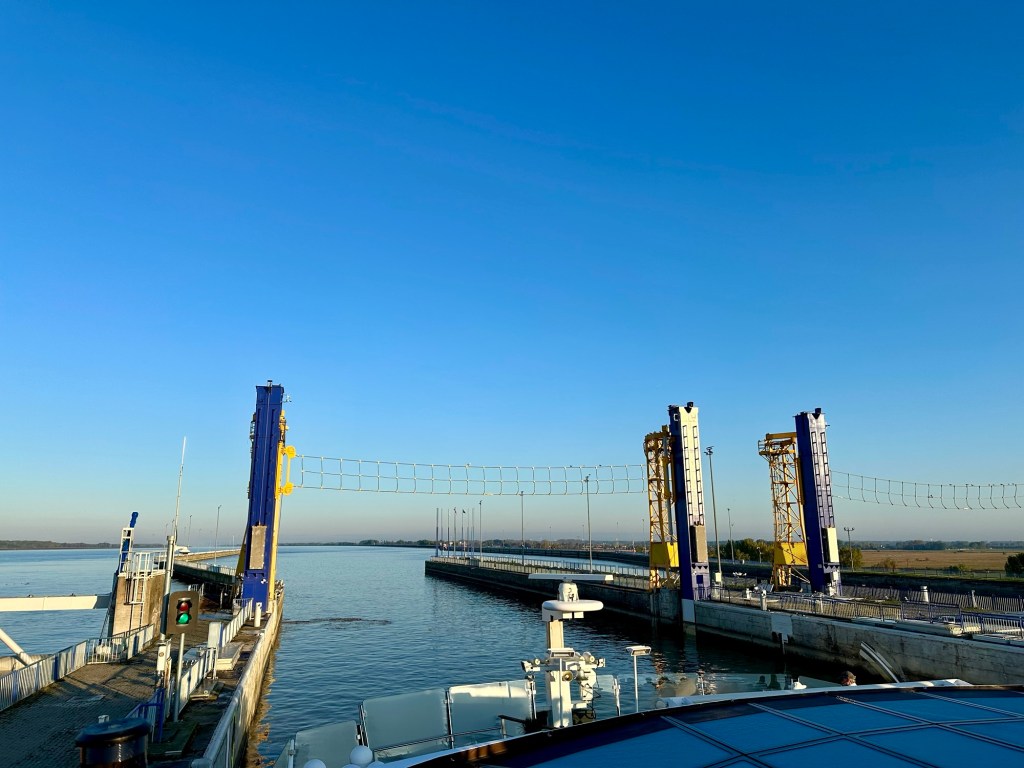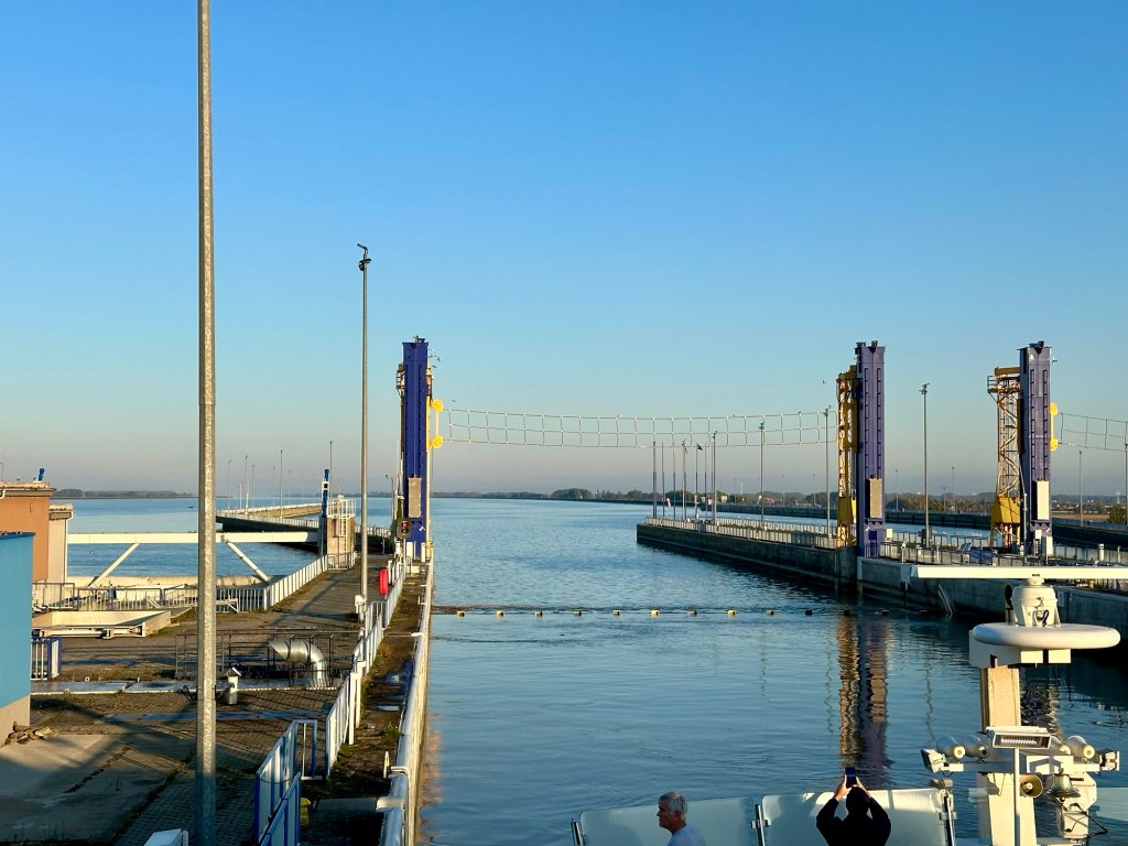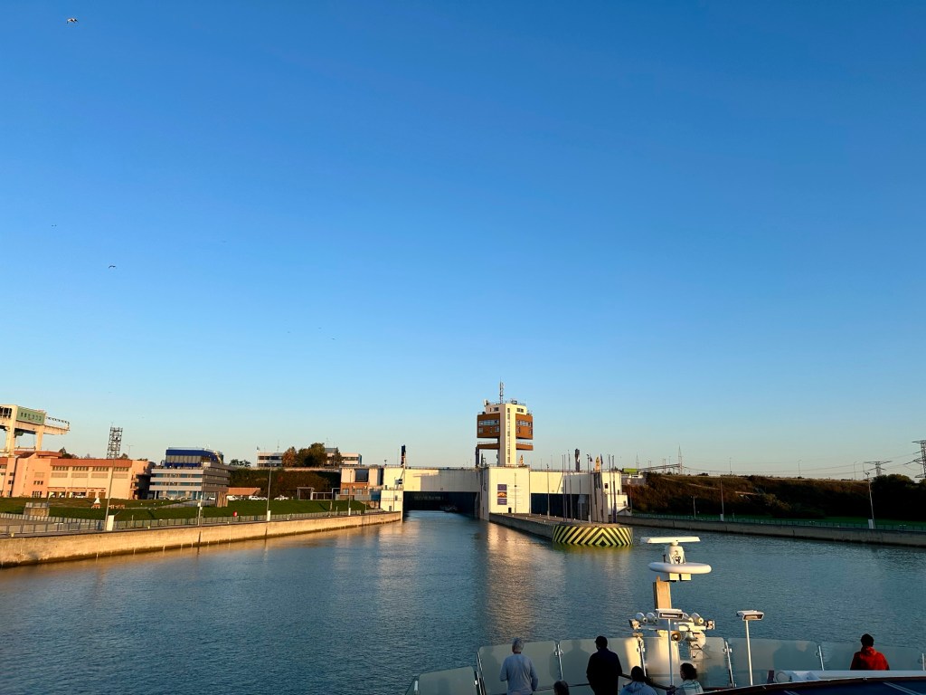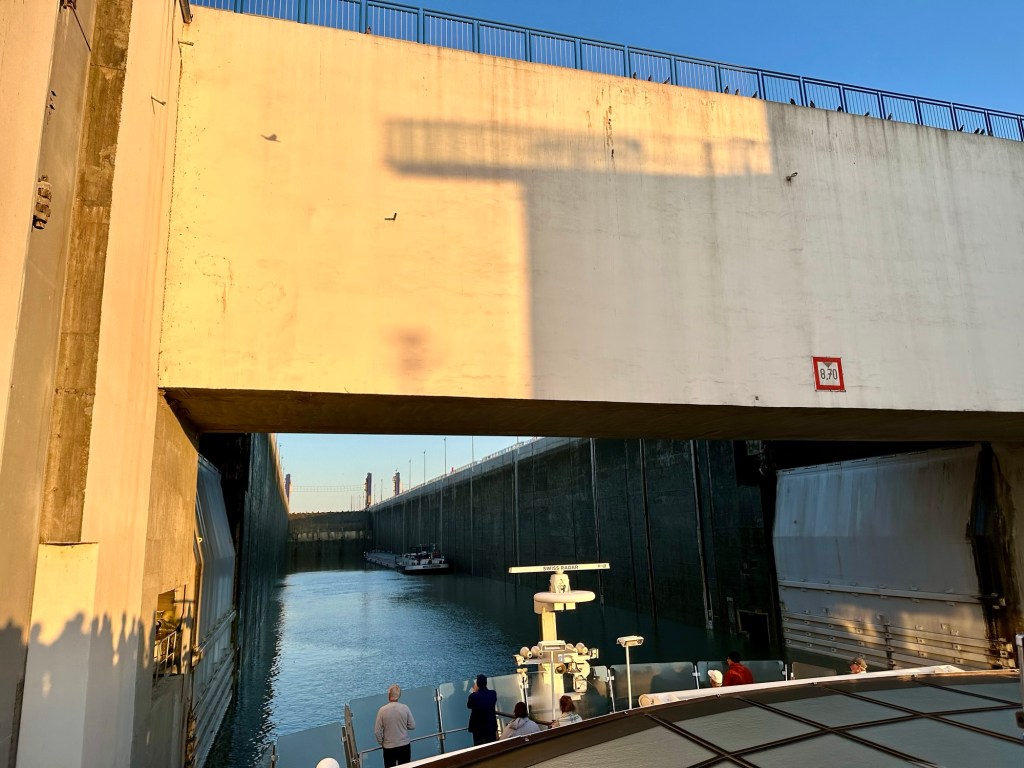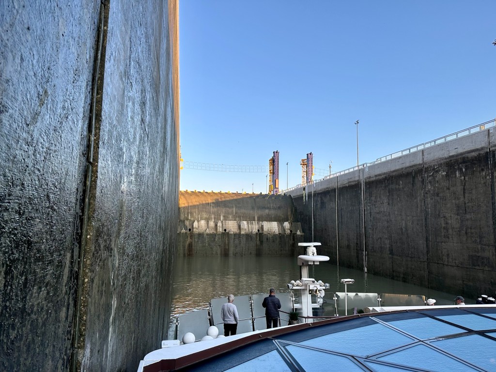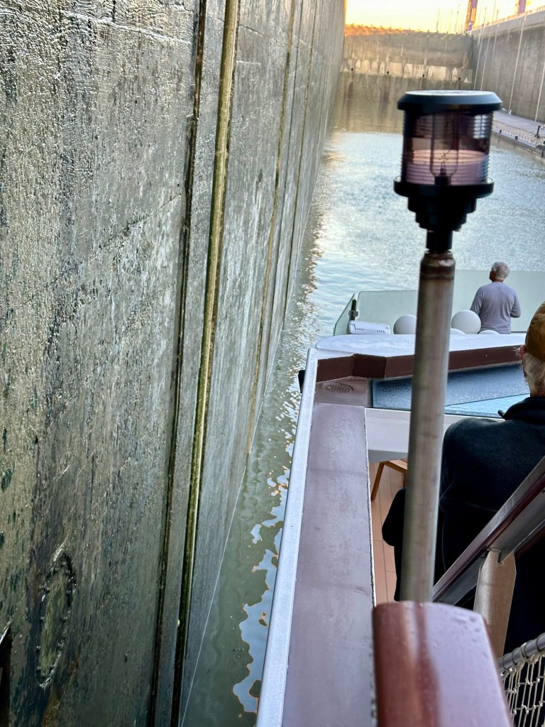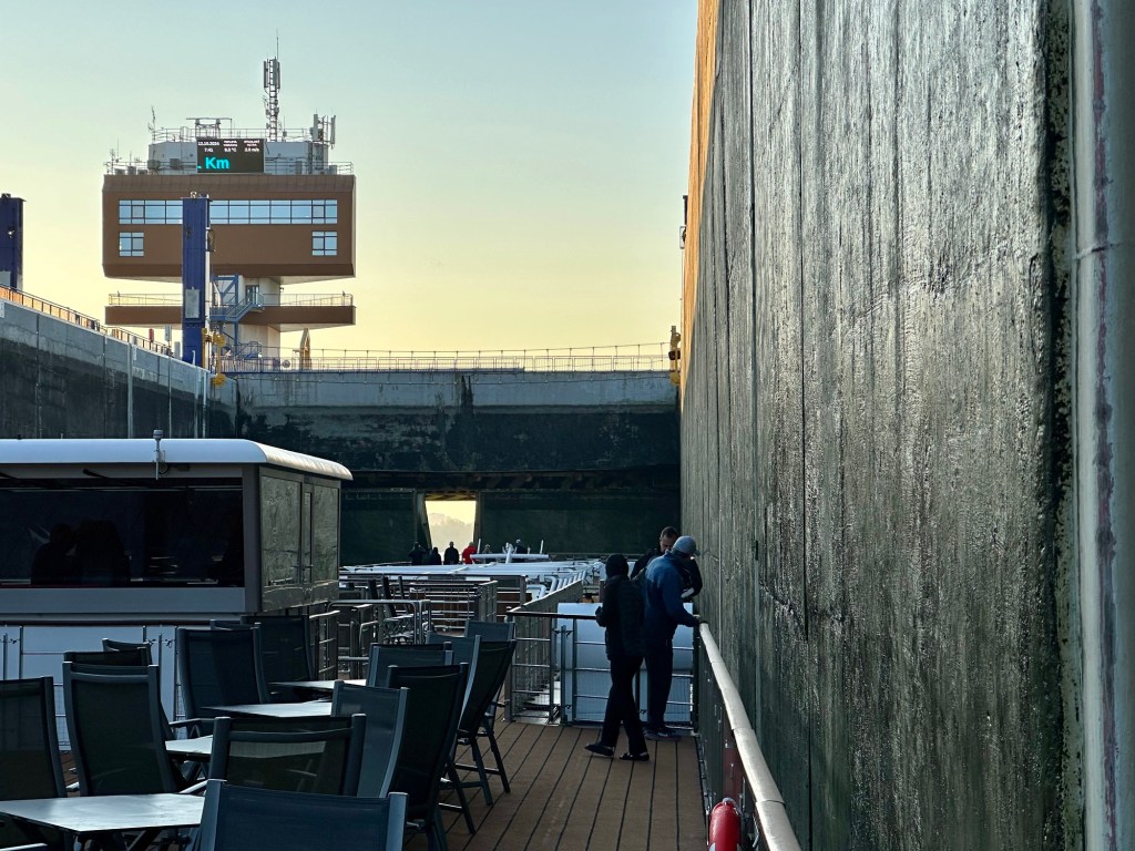 We had an early wake up call this morning to head to the sun deck to watch the ship go through the largest locks. It was a chilly 49 degrees. I’m beyond thankful that I packed a coat.