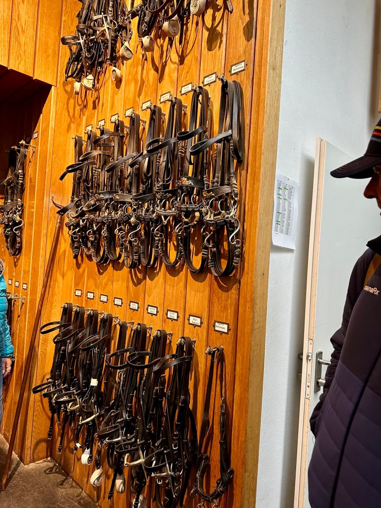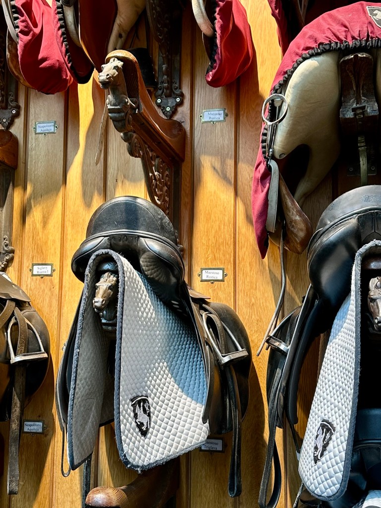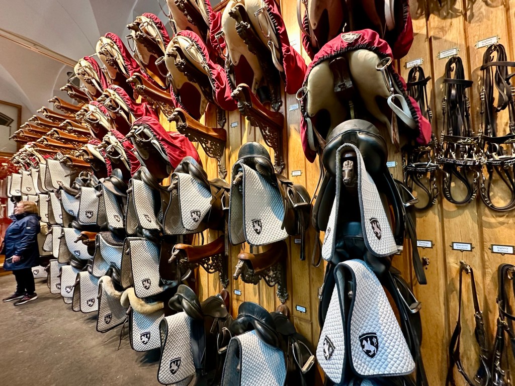 Each rider gets two saddles that are custom made for them. A practice saddle and a performance saddle. Each horse has two bridles, a practice one and a more ornate one for performances.
