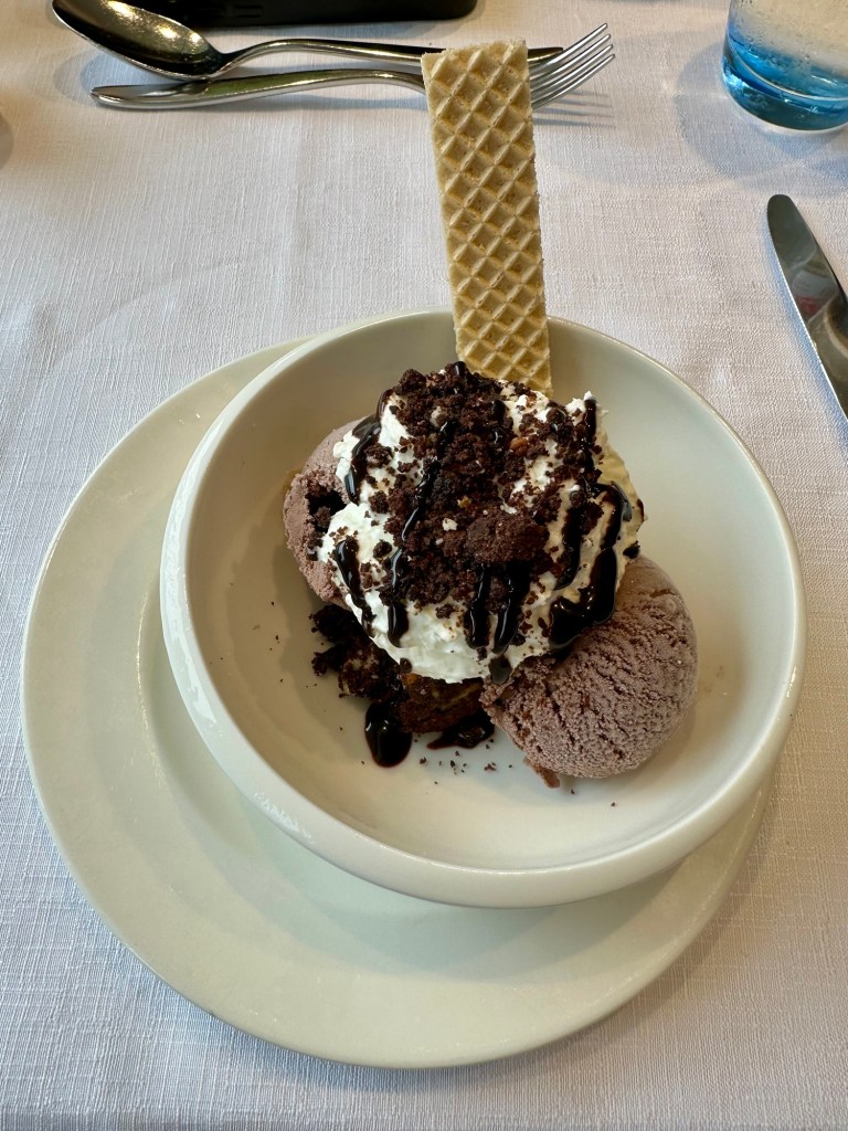Speaking of being jealous I’m the one who made the bad dessert choice. I went with the Floating Island and it was just ok. Greg’s sundae was way better.