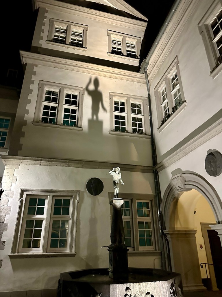 I had seen something about a fountain with a mischievous boy who spit water on unsuspecting people so we decided to check it out. Love the shadow of the boy on the wall behind the fountain.