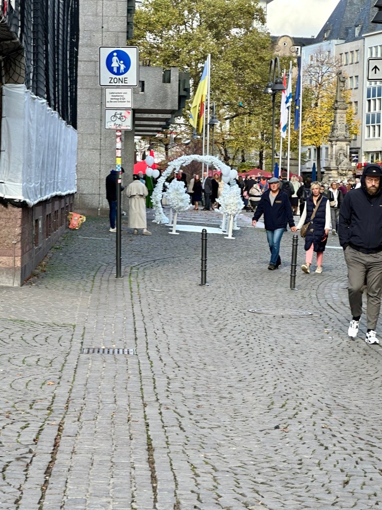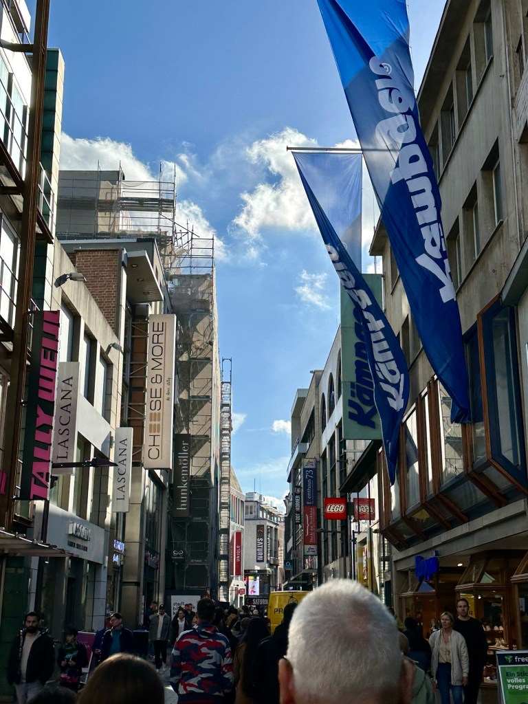 Greg and I have a tour scheduled to go to the Top of Cologne and have instructions to meet on the side of the Cathedral near the camera shop. We looked for it on our morning tour and didn’t see it. We are off to find our intended destination. Carey and Linda are headed back to the boat.