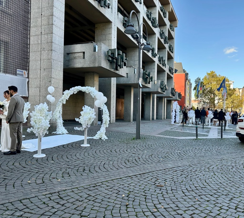 Our tour guide explained that it’s a requirement for couples to get married at the court house. When we were there, some people had gathered waiting for the couple to come out with a large balloon. He said typically the Turkish people do it right with large arches to celebrate while the Germans are boring and don’t really celebrate the couple. As we were walking through there were several arches set up….clearly by the Turkish.