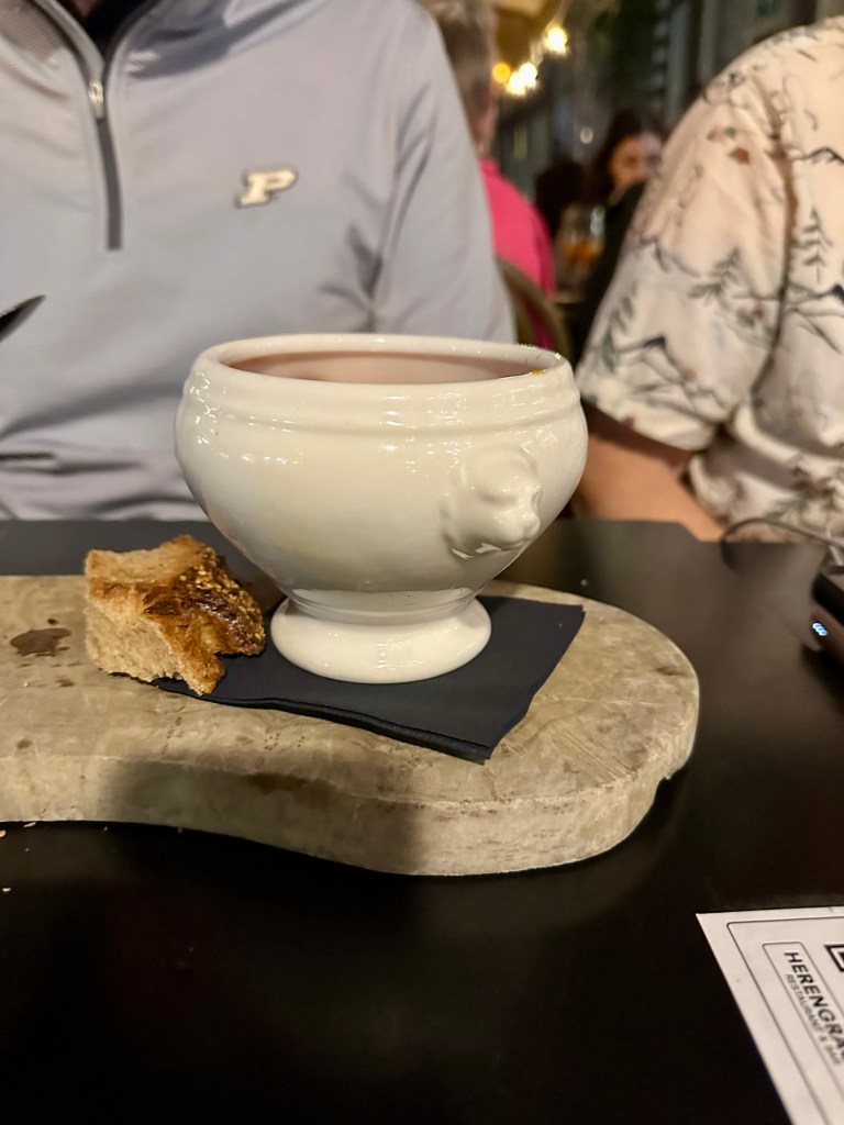 Our server was a young guy who could obviously immediately tell we were Americans. He asked where we were from and when Greg said Kentucky he said “Ken-two-key? Well that’s a first!” He then went on to briefly bring up the elections (whyyyyyyyyy) before bringing us menus.