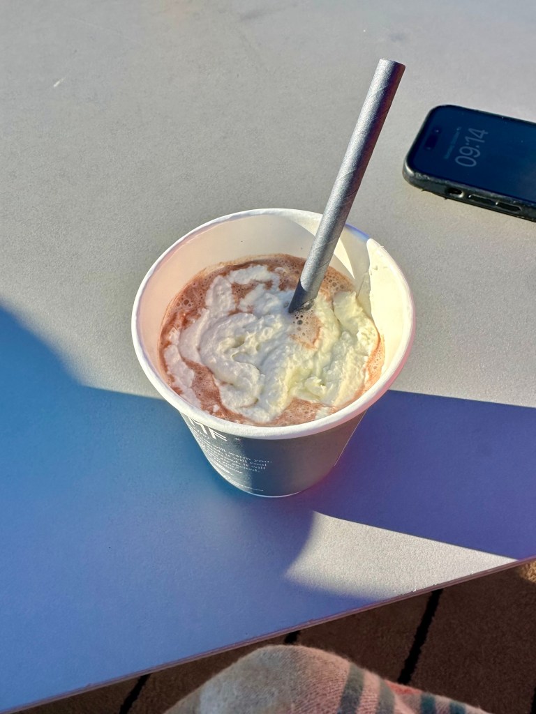 9:15am and they are serving hot chocolate with chocolate liqueur.Vineyards