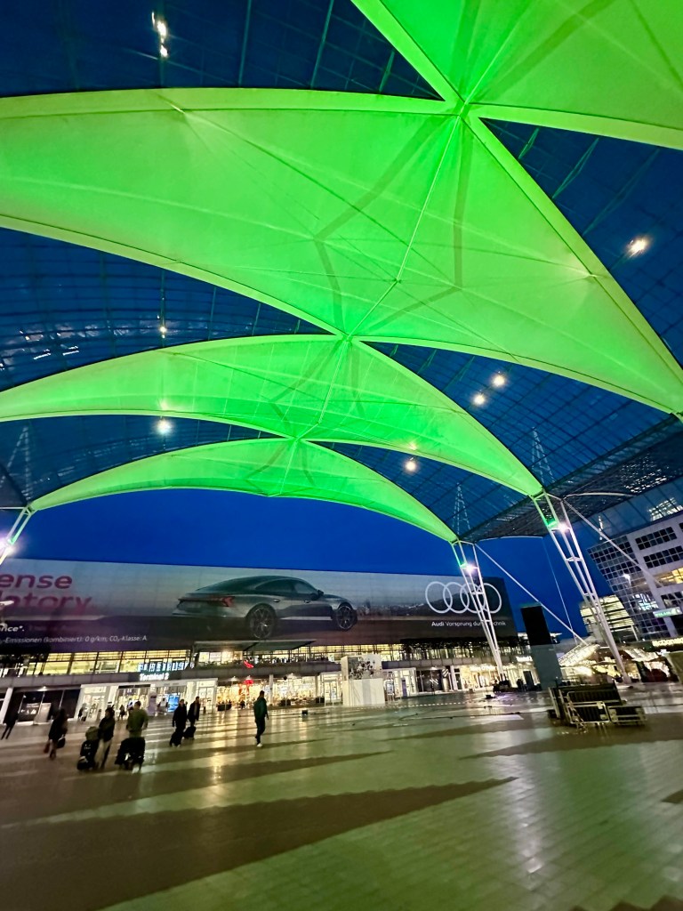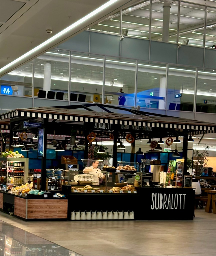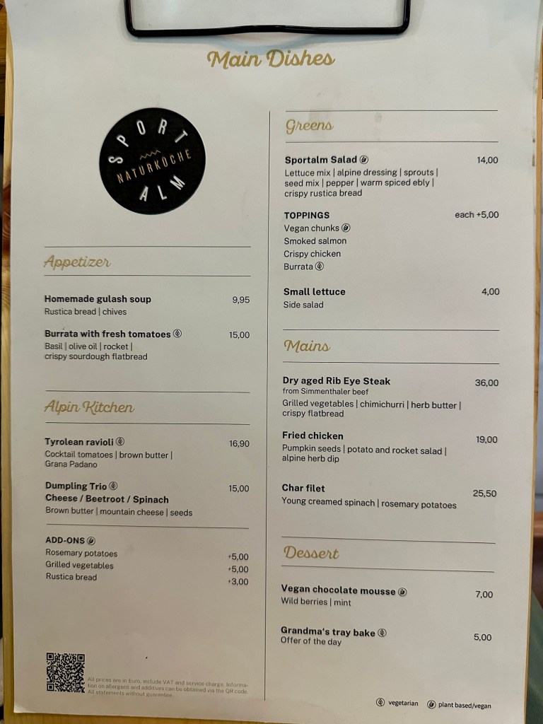 Airport restaurants are our only option. We checked out a few places and ended up at a restaurant we ate at on our last trip. It has a ski chalet vibe. I was so tired I literally took no pics.